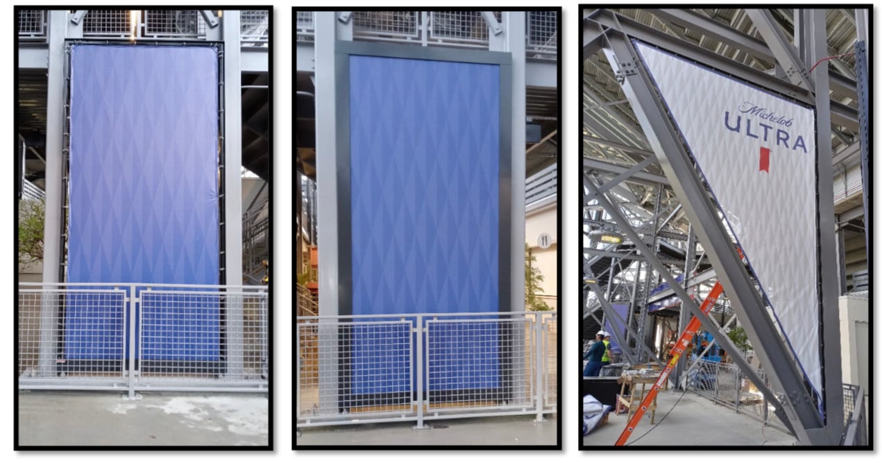 The complete solution for open-air surfaces like parking garage exteriors, scoreboard backs and spaced beams and columns where signage displays face wind exposure from all sides. BannerFrameAIR ships pre-measured & prepped for direct-from-box installation.